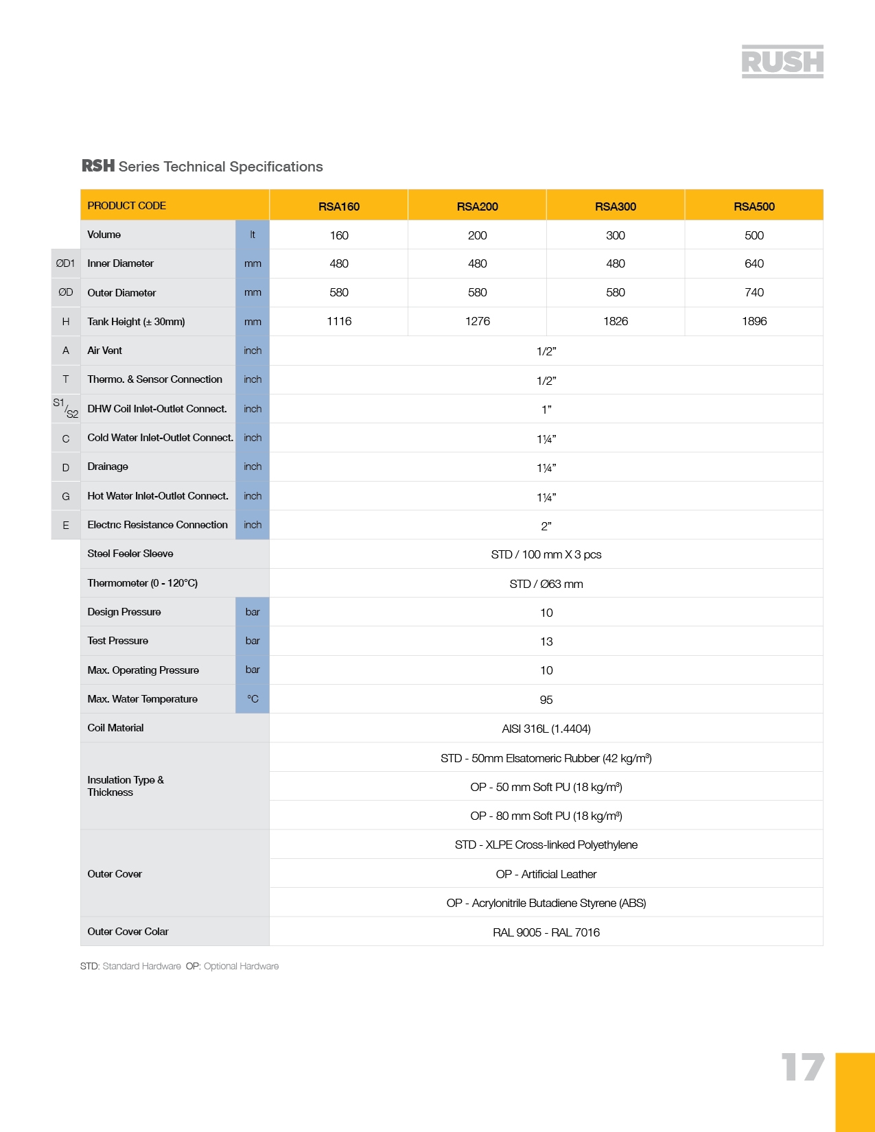 RUSH brand heat pump boilers, with AISI 316L (1.4404) stainless steel coils, produce hygienic water while also serving as a buffer tank for heat pump devices. A different heat source can be connected to the heat pump boilers to support the system’s heat pump. RSH model devices are recommended for inverter and On/Off heat pumps.